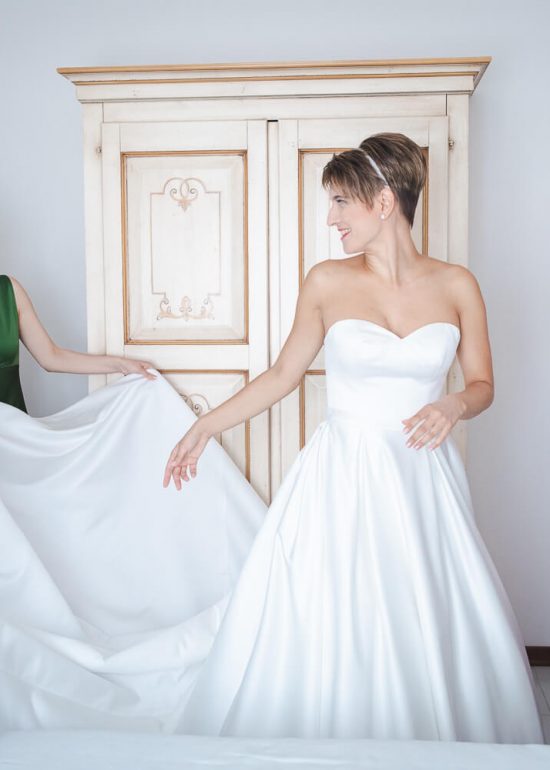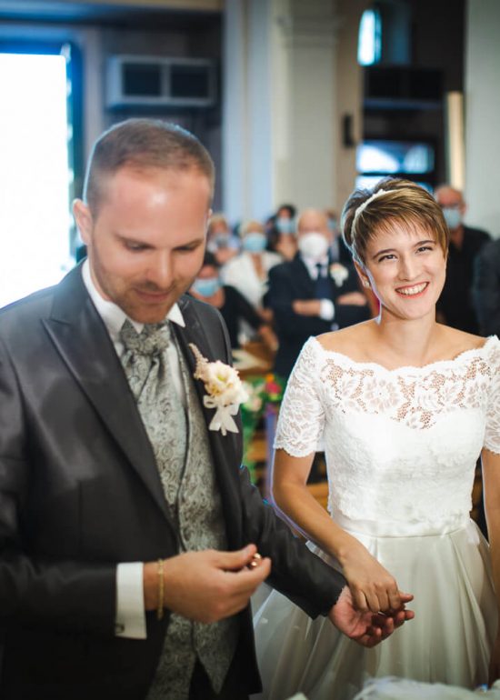 sposi che si guardano tenendosi per mano davanti ad una finestra