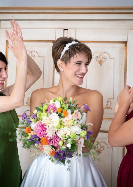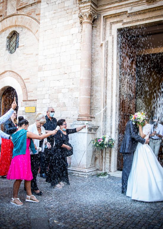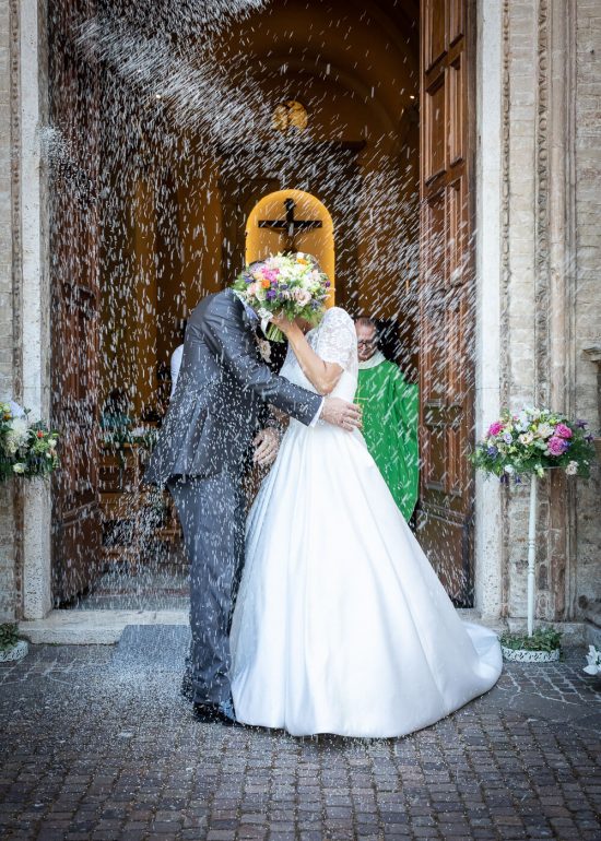 sposi che si lanciano il bouquet