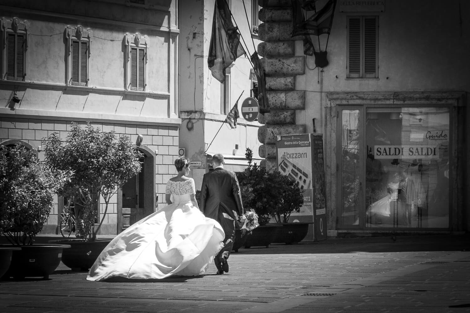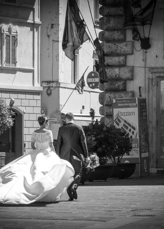 coppia di sposi che camminano