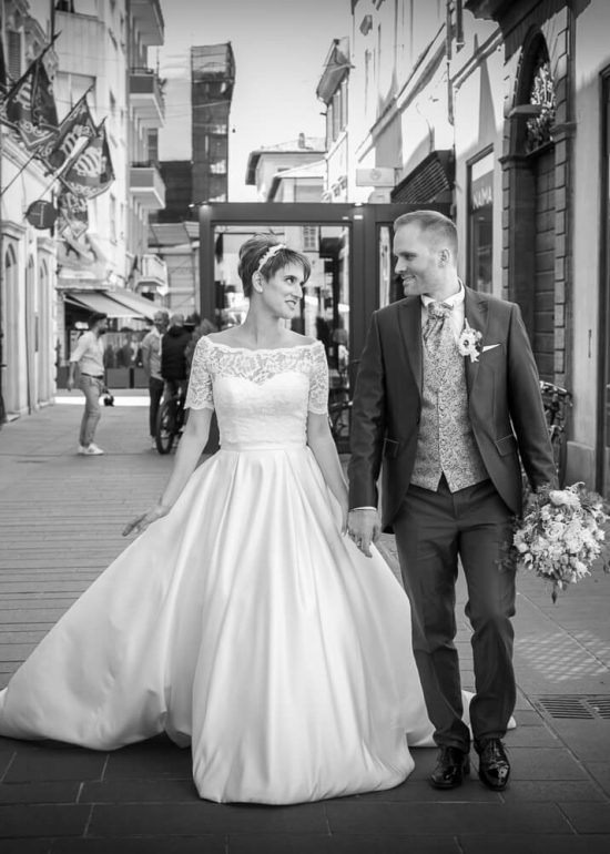 sposi che passeggiano mano nella mano